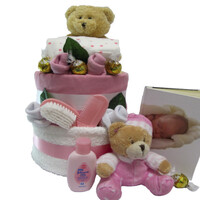 no need to bake these cakes, made from the finest newborn ingredients, each cake is brimming with suitable gifts for a new baby.