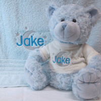 "TEDDY BEAR & BATH TOWEL GIFTS PERSONALIZED" This gift set includes: - 30cm Teddy bear with personalised name - luxury 100% cotton bath towel (135cm x 68xm) personalised name