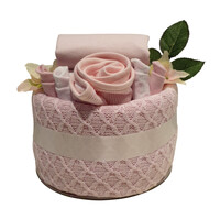 Celebrate the arrival of the new bub with this adorable baby gift cake available in baby pink featuring gorgeous designer garments, knitted blanket and more!